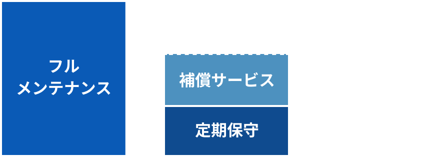 削減。フルメンテナンスから点検保守プランに切り替え。有償修理に備えた補償サービスに加入いただくことで、コスト削減を実現します。